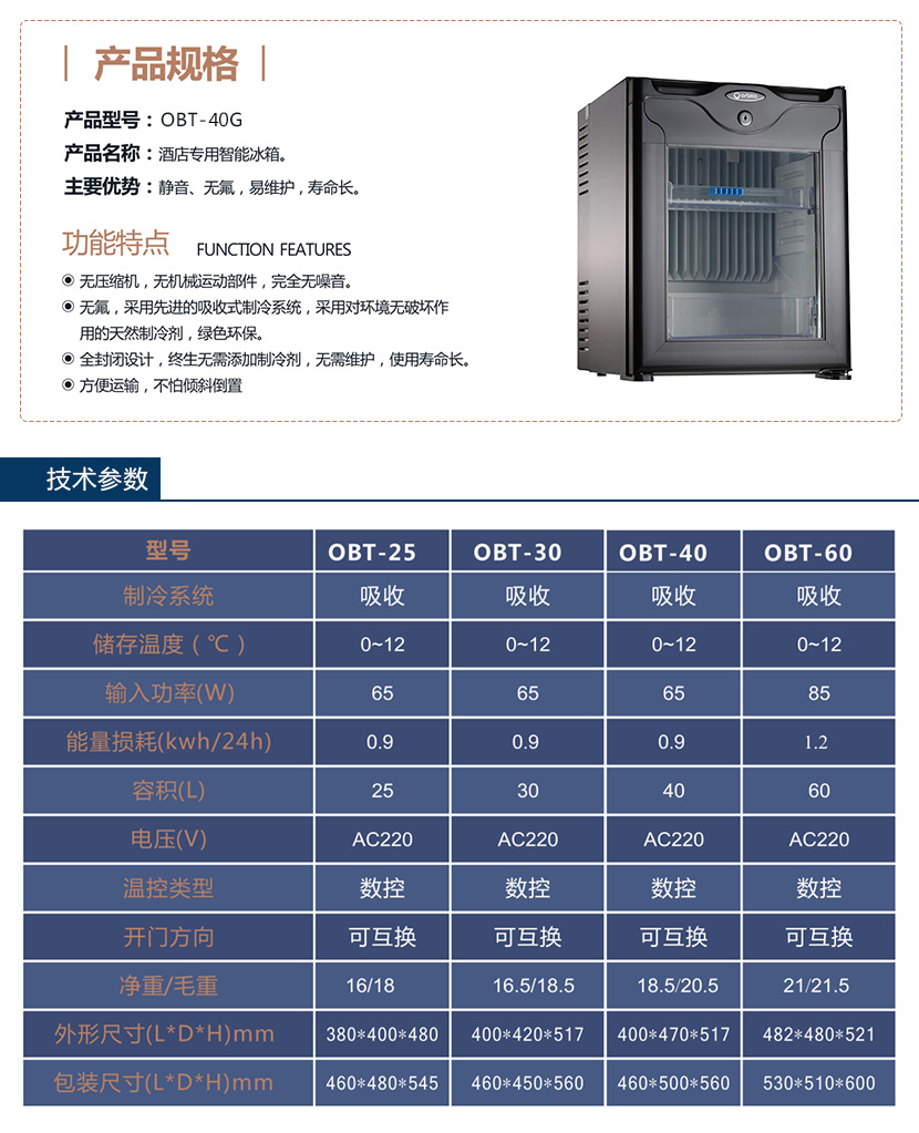 酒店智能冰箱:OBT-40G