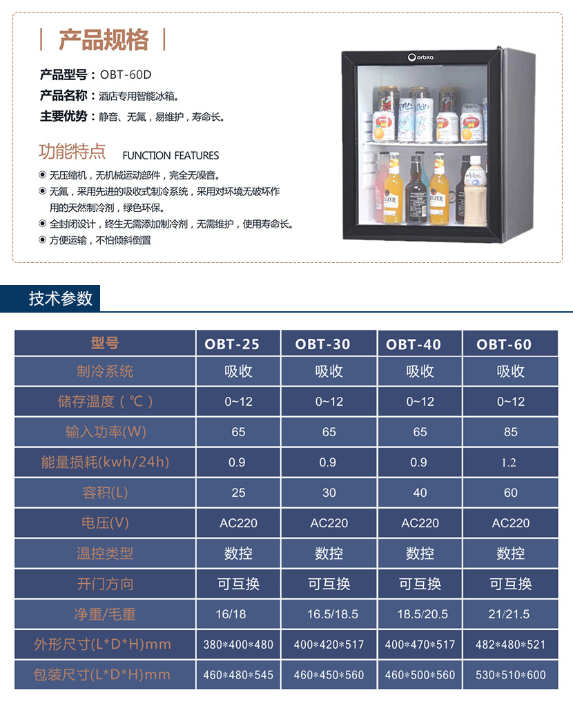 酒店智能冰箱:OBT-60D