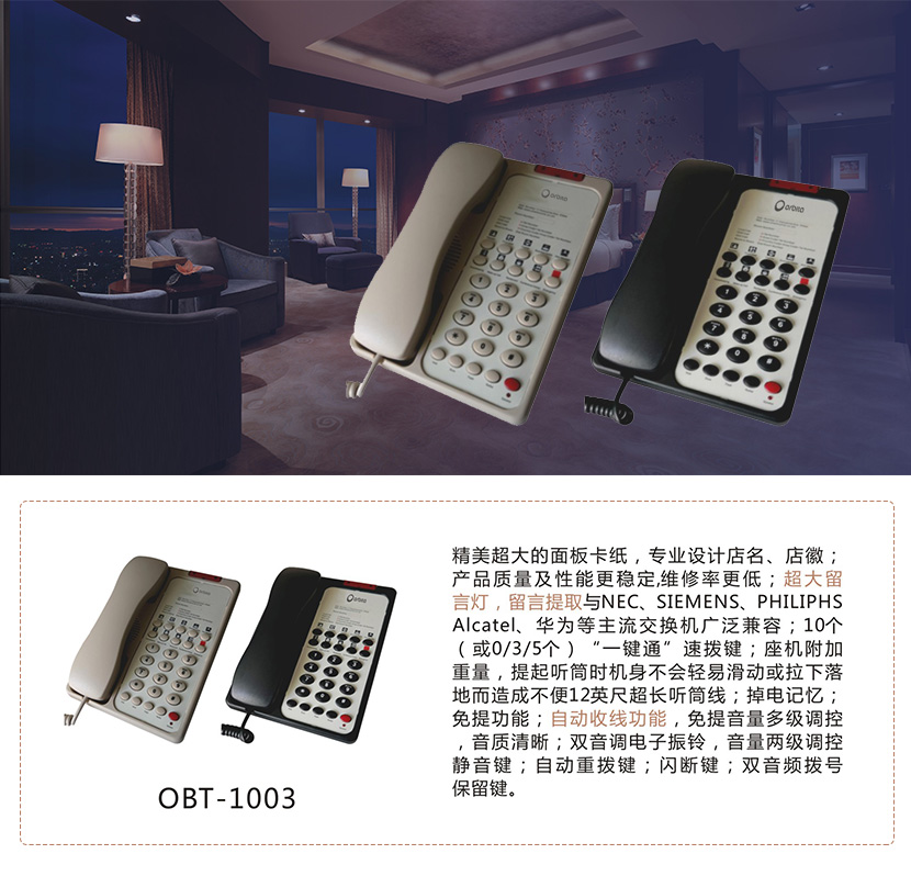 酒店客房電話:OBT-1003
