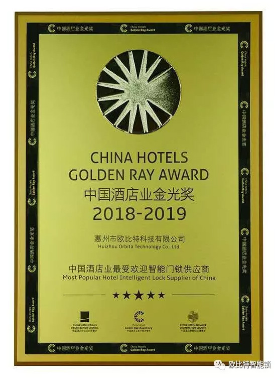 歐比特作為中國具備規(guī)模的智能門鎖工廠,第19屆中國金馬獎(jiǎng)“中國最佳酒店智能門鎖供應(yīng)商”,第5屆中國酒店業(yè)金光獎(jiǎng)“中國酒店業(yè)最受歡迎智能門鎖供應(yīng)商”,歐比特科技參加本次展會(huì),并獲得圓滿成功!