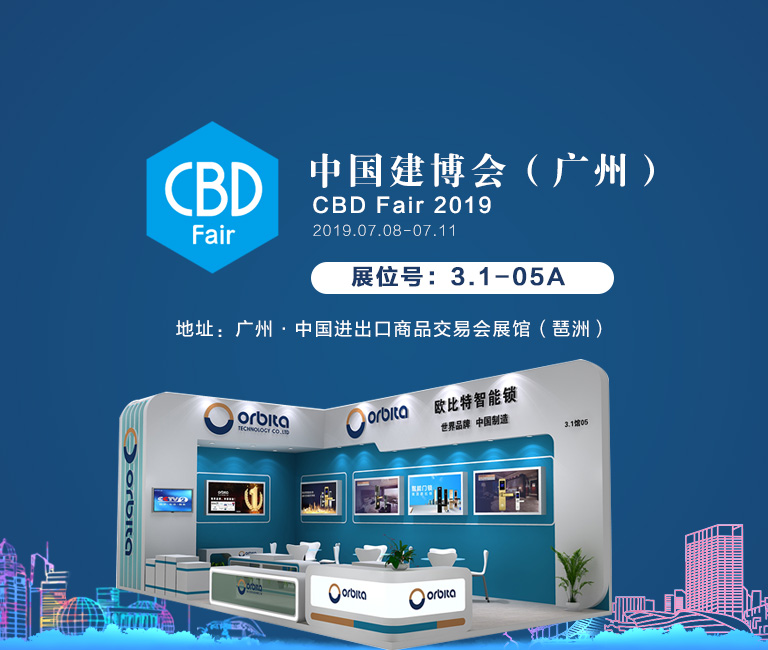 第二十一屆中國廣州國際建筑裝飾博覽會——(中國建博會)于2019年7月8日至7月11日在廣州琶洲展館(中國進出口商品交易會展館)盛大召開。歐比特酒店智能門鎖、家用智能門鎖、公寓智能門鎖等新產品將集體亮相此次盛會。物聯(lián)網與人工智能的大時代即將來臨,歐比特將全方位布局智慧酒店、智能家居、智慧公寓及整體解決方案等各個領域。未來已來,相約廣州,歐比特全體同仁恭迎您的到來!